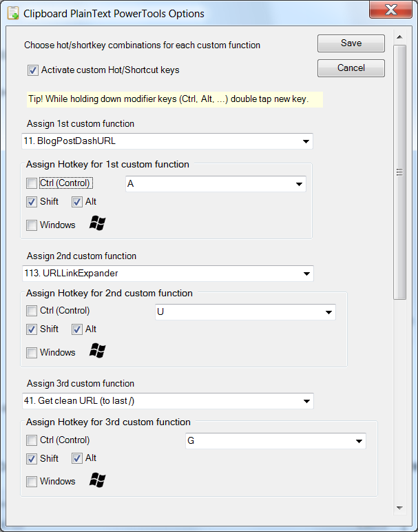 | <Alt><Shift><u>* | 2nd Hotkey Mapping to an assigned transformation function |